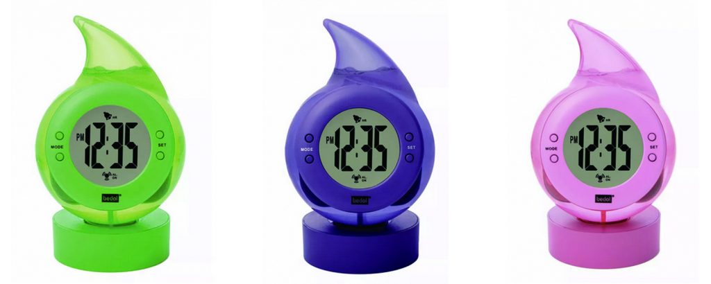 Featuring an alarm function – Bedol, this truly eco-friendly, battery-free timepiece is powered by water. Inside of the semi-transparent water reservoir are proprietary metallic plates that allow ions in the water to be turned into electricity which powers the clock and alarm. The amazing Bedol water clock never needs batteries. Its powered by ordinary tap water that comes from your home’s water facet. Just fill with water and the bedol water clock will keep perfect time and even has an alarm to wake you up in the morning.