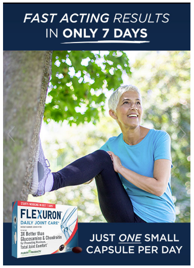 Available online for $24.95, FLEXURON® sets a new standard for joint comfort by combining 3 powerful ingredients in one small soft gel capsule, including: