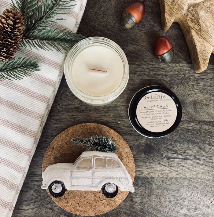 - At the Cabin (Notes of Vanilla, Chestnuts, Cedar, Clove + Tonka)