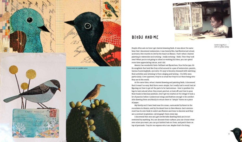 GENINNE’S ART: BIRDS IN WATERCOLOR, COLLAGE, AND INK