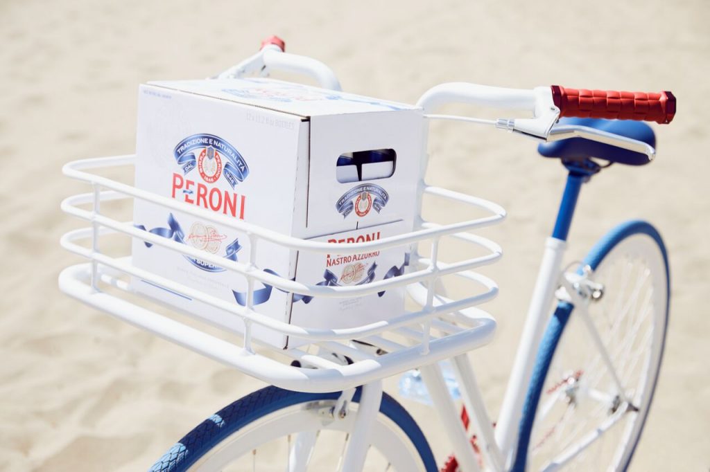 “Martone for Peroni” bike was revealed in May and doubles both as a functioning, versatile lifestyle essential and as a coveted design item turned collector’s piece.The Martone for Peroni bike was designed to conjure daydreams of a quintessential Italian summertime, of afternoons spent leisurely pedaling through the countryside, with a picnic in your bike basket and the sun on your back. There is a European sensibility to the design and usefulness of each Martone bike, aligning perfectly with the fashionable Italian lifestyle represented by Peroni Nastro Azzurro.