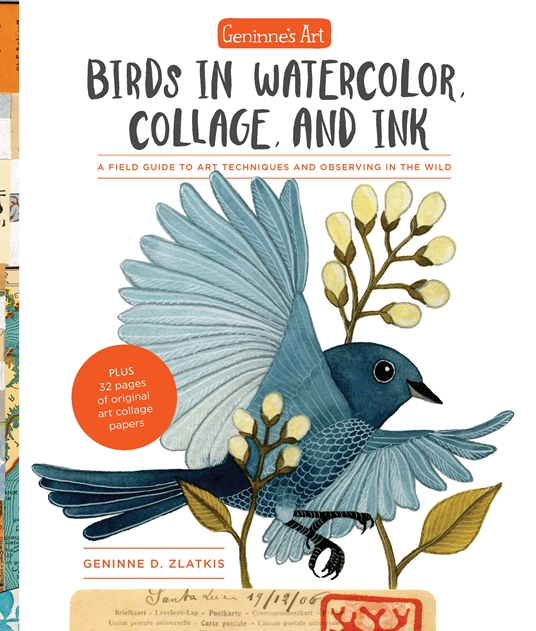 Santa Fe nature artist Geninne D Zlatkis is well-known on Instagram and Pinterest for her charming paintings and collages of birds. In GENINNE’S ART: BIRDS IN WATERCOLOR, COLLAGE, AND INK (Quarry Books, June 12, 2018, $24.99 US), for the first time, she offers her fans a field guide to her art process. A skilled nature photographer as well as artist, Geninne begins her work in the field by observing and photographing birds and flowering plants. Then takes her observations back to the studio, where she turns them into works on paper.
