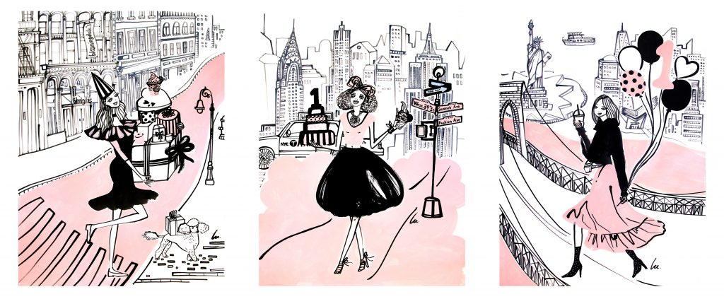 Four years ago, I moved from Beijing for graduate study at Fashion Institute of Technology; this accounts for my second MFA – if there were such a thing as a PHD in Illustration I would pursue it. My first was an MFA in traditional Chinese Painting from Central Academy of Fine Arts. For Chinese painting, I use ink, gouache and soft brushes, which I still use in my current illustrations. Similar to how America brings all cultures together, I use traditional Chinese painting methods to illustrate New York City’s modern topics; predominantly fashion lifestyles and our beloved city landscapes. I think of fashion lifestyle as not only about high fashion during certain weeks, but more importantly about anyone who loves their life with a sense of pride. They are positive, they are kind, they are beautiful inside out, they are bravely chasing their dreams, and of course they have their own unique fashion styles.