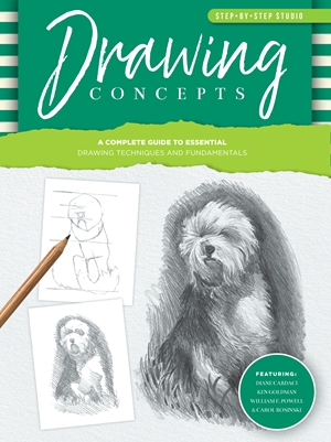Throughout the book, artists Ken Goldman, William F. Powell, Diane Cardaci, and Carol Rosinski offer practical and easy-to-understand drawing techniques and art principles. The journey through Step-by-Step Studio: Drawing Concepts is not about making perfect drawings; it’s about making each drawing better than the one before it, while having a great time.