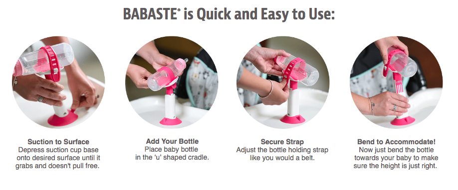- Babaste Bottle Holder for Toddlers and Babies is the perfect solution to bottle throwing and makes bottle feeding easy! No-Spill Design: The Holder automatically repositions its original starting point whenever baby releases their bottle. Also, the Babaste Holder has a radical pivot range, allowing the baby to grab and use from any angle!