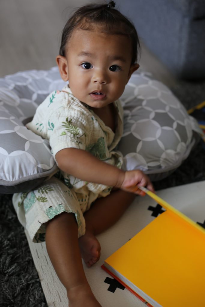 Now that NIko is on the move, it is also the best thing to catch him if he falls! He loves to use the Boppy during our storytime too.