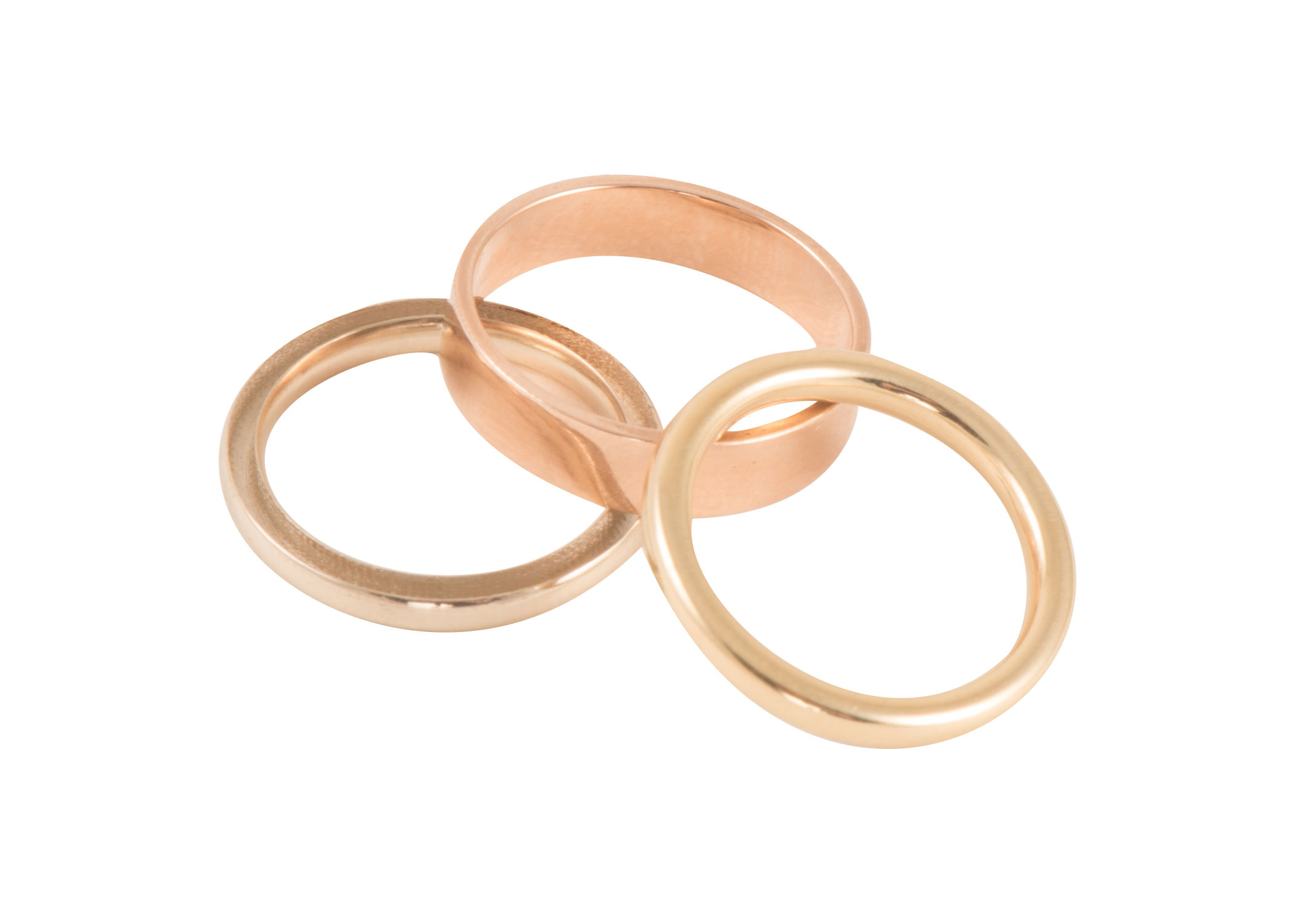 All rings are offered in quarter size increments, allowing the customer to have a final piece that is their size without any rigged adjustments. While shopping for her wedding ring, Jackson realized perfectly fitting rings were not a concern of the large luxury houses. In order to solve this problem, and offer customers a true fit, she founded Jennie Links as a way to finally have the pieces she desired in exactly the right size and color of gold. All pieces are offered in yellow, white and rose gold. Customers choose what color or combination of colors they want per piece.