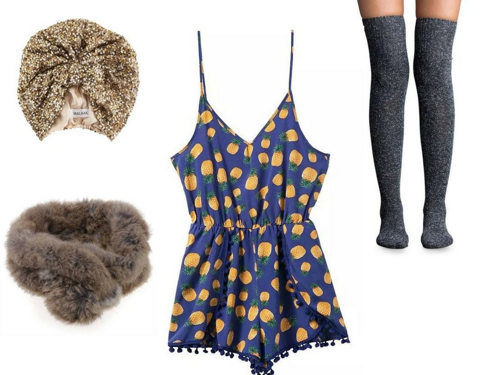 Monochromatic clothes are always elegant and stylish, but you have the entire year to look like that. Why not experiment a bit and choose to wear a piece that has a vivid graphic print this Christmas? And we’re not talking about reindeer-and-Christmas-tree print sweaters, everyone already wears those. A geometric design on yoga leggings, or something that yells ‘summer’ all over the place, like a palm tree button-down shirt, or a grey sweater with a bright pineapple printed on the front will bring the summer air into the room even if it’s snowing outside and you’re drinking a cup of tea by the fire. A simple bandana with bananas or a scarf with cherries are also great choices if you want to keep it simpler.Splatter glitter everywhere