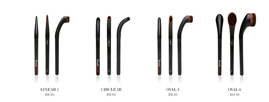 · BrushCraft Oval 6 – This is the perfect size and shape brush for applying foundation, contour, and blush. Pick up a small amount of product and gently sweep it across the area of the face you want to cover. This brush has over 60,000 individual fibers in the bundle, which is the main reason it applies and blends product beautifully.