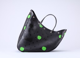 Rei Kawakubo founded Comme des Garcon, the anti-fashion, austere, sometimes deconstructed garments fashion line. You know, the heart cardigan that Kanye and Drizzy rock. She did a H&M collabo back in 2008. Remember?For Rei Kawakubo’s hotly anticipated collaboration with The Beatles, the apple didn’t fall far from the tree… Yes please 🙂 I love bags that are interesting because they are great conversation starters. BUT I’m just wondering if everything slides to the slant when you carry this bag. Ummm. I am all about optical illusions but I wouldn’t want to be a banana squished at the bottom of this apple bag.