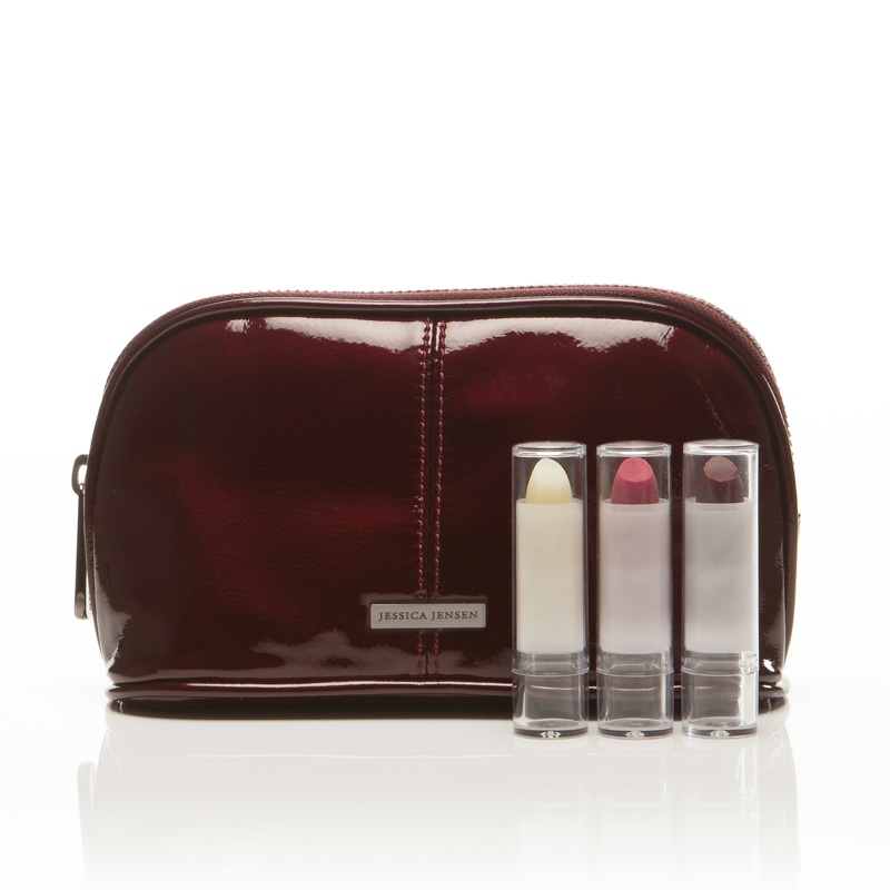 KISS ME: $58: JESSICA JENSEN Candy Apple Red Patent Cosmetic Bag DALISH COSMETICS Shea Butter Lipstick; Hot Mamma Lipstick; Ruby Red Lipstick