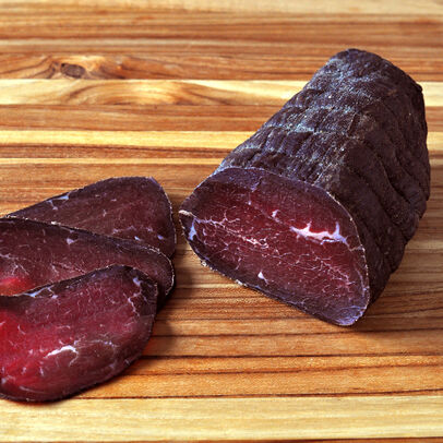 1 Piece (1.75 – 2.25 lb avg)Wagyu beef bresaola, made from beef raised humanely, with no antibiotics or hormones. This Italian-style charcuterie is hand-crafted and dry-cured with simple ingredients – nothing but beef, salt and spices. No nitrates or nitrites added. This Wagyu Bresaola is a decadent offering on a charcuterie board. Using a very sharp knife or a meat-slicer, cut paper-thin against the grain. You can add a light drizzle of extra-virgin olive oil to bring out its flavor. In Italy, bresaola is often served with a soft cheese, like Robiola, as part of an antipasti course.