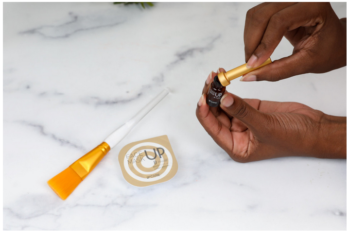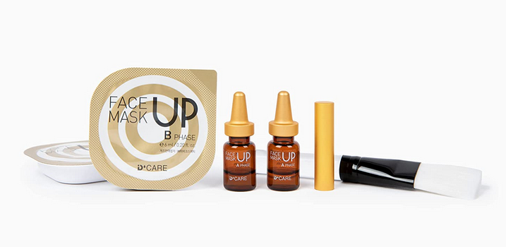 Introducing D’Care’s FACE UP Mask. This metamorphic, age-reversing mask treatment transforms the appearance of your skin in minutes. If you’re looking to tighten, lift and deeply hydrate your skin, D’Care FACE UP Mask is a quick 15-minute ‘Face Lift’ in a bottle. FACE UP Masks are the answer for creating the smoothest makeup canvas for your camera-ready complexion. It’s super easy to use. Simply mix the lifting serum ampoule into the gel pack, apply the mixture to your face with the brush, then watch and feel your face literally tighten before your eyes.