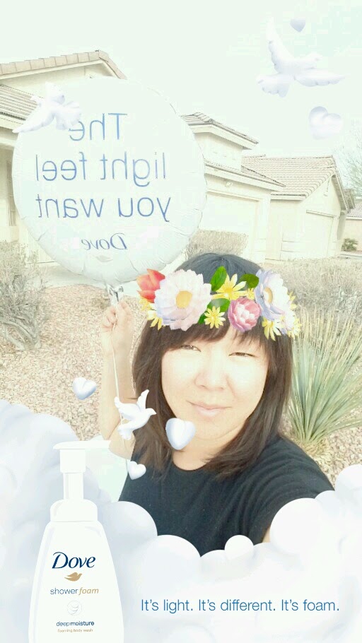 I got a fun mailer today from Dove! It’s all about the light and airy feel. Skipping spring and heading straight to summer, it is so important to have a moisturizing body wash to combat the Las Vegas dryness. I got a huge box from Dove today that contained a sample of the new Shower Foam, a secret Snapchat filter and a helium balloon!