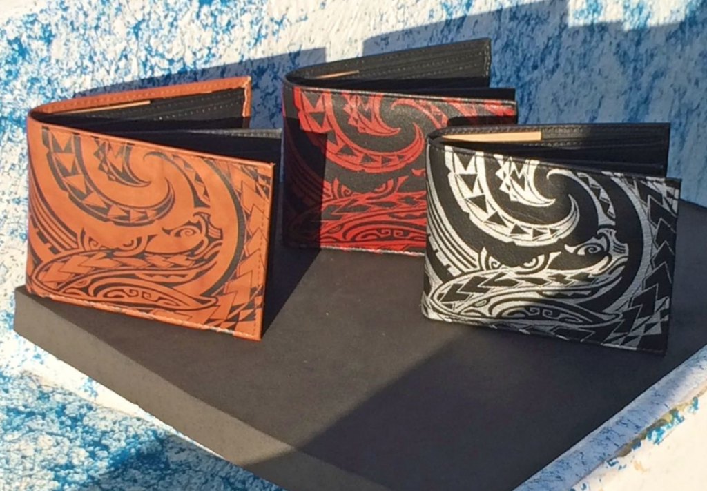 The product line launched with a small collection of men’s bifold wallets and card holders. Today you can choose from a wide variety of men’s and women’s wallets, cuff wristlets, and even bags, with authentic tattoo art created by award-winning tattoo artists with Hawaiian, Maori, Marquesan, Samoan, and Tahitian backgrounds and training.