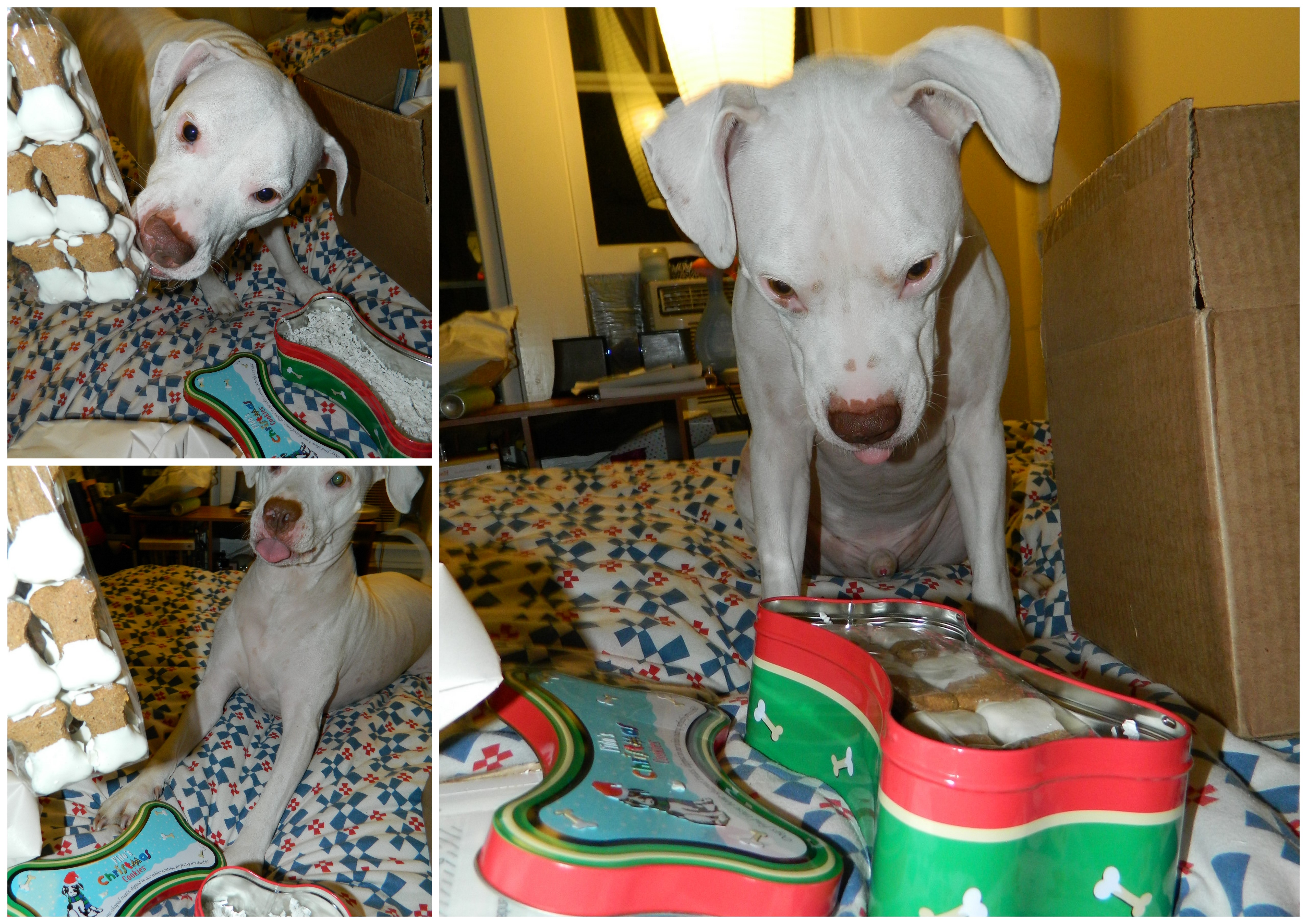 Jacob recently received the Christmas Cookies and he was over the moon! As soon the package arrived, his eyes got really big and his tail was wagging at turbo speed. The little pink tongue was ready to taste these treats!