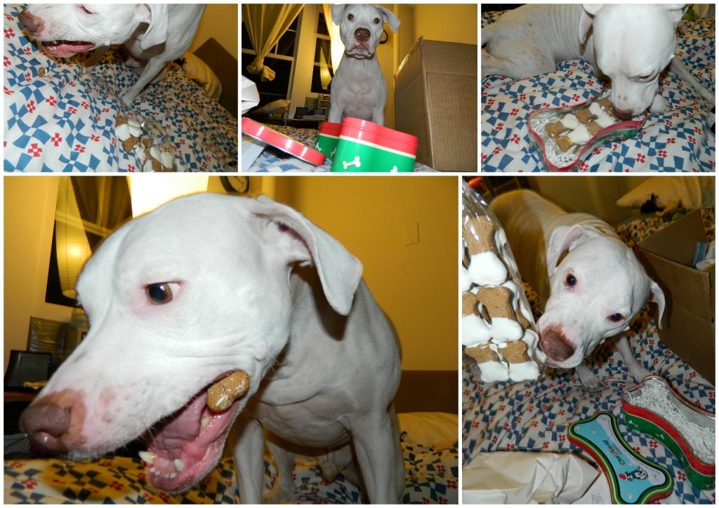 So we had to open them! These are one of the best presents you can get for your dog or your friend’s dog this Christmas! The cookies are delicious and the tin is reusable to keep all your treats, toys, and knick knacks!