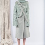 Rubin Singer’s fall / winter 2016 collection began with an exploration of his intentions as a designer. Staying true to his core image of architectural femininity, Singer delves into new categories, new shapes, and new fabrics for the new season. Unique in his approach to designing, Singer starts with an inspiration, such as the mathematical formulation “Homomorphism” (that any given formula ends up in the same place no matter how many times you change it), which is the hallmark for the fall / winter 2016 season, and then moves to fabrics – textures & colors – and from there the shape and pattern of his creations are revealed.