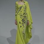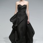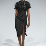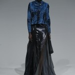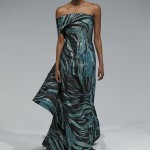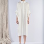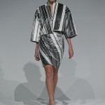 This collection, which debuts knitwear and more ready-to-wear separates, is a continuation of Singer’s spring / summer 2016 mathematical inspiration “vector.” Late 60’s and early 70’s undertones echo throughout the collection in the form of separates, day dresses, and dramatic evening gowns. Multi directional silk chiffon dresses, glass embroidered eveningwear, and duchess satin jackets continue to show Rubin’s technical use of classic fabrics. Touches of Indian lamb, python, and velvet add to the sophistication and drama seen in a Rubin Singer collection, and geometric shapes and silhouettes convey the overall season inspiration.