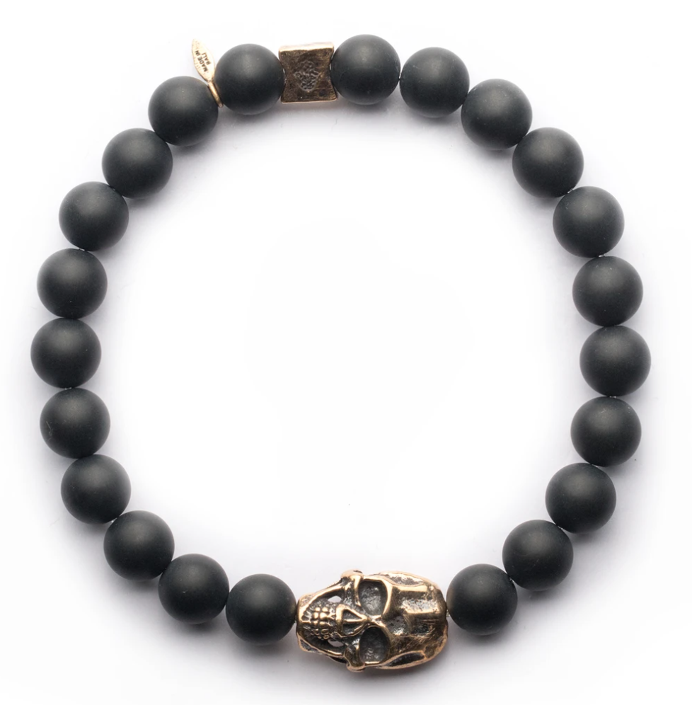 CELEBRATE LIFE SKULL CHARM BRACELETThe more you praise and celebrate your life, the more there is in life to celebrate. This powerful Celebrate Life Skull Charm Bracelet will help you tap into the omniscient energy that surrounds it every day. The Matte Onyx Stones absorb and transform negative energy while preventing the draining of personal energy in the process. This Skull charm symbolizes our impression of time, the state of divinity and deity that exists in the universe, and the origination into eternity and the afterlife.