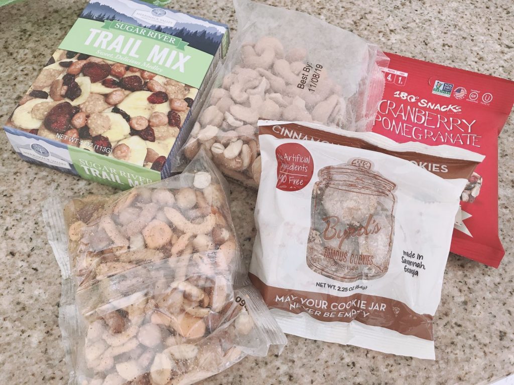 - Cranberry Pomegranate Clusters by 180 Snacks – 1 oz. – Hearty trail mix clumps with dried cranberries, and the sweet taste of pomegranate seeds.