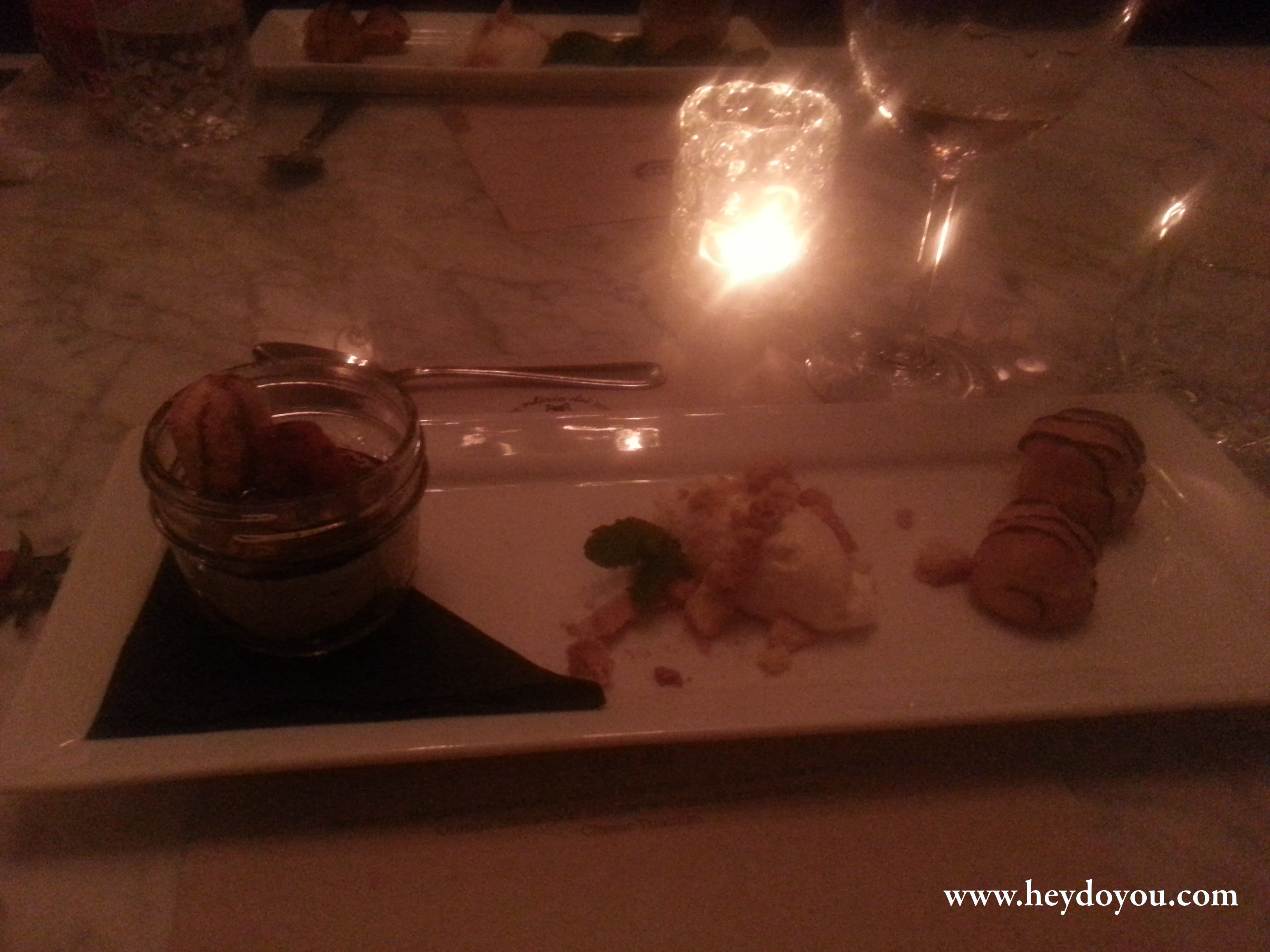 We were greeted with a tall, crisp glass of champagne and then led to the bar area where we were showered (yes that’s what it felt like)… we were showered with all kinds of delicious appetizers and of course more champagne. We hadn’t even sat down at the table and I was already getting full, but I wore a loose dress just so I could taste and savour everything that they had to offer! So now, enough talking. Sit back, relax (don’t forget your bib, if you haven’t started drooling already 🙂 ) and enjoy!