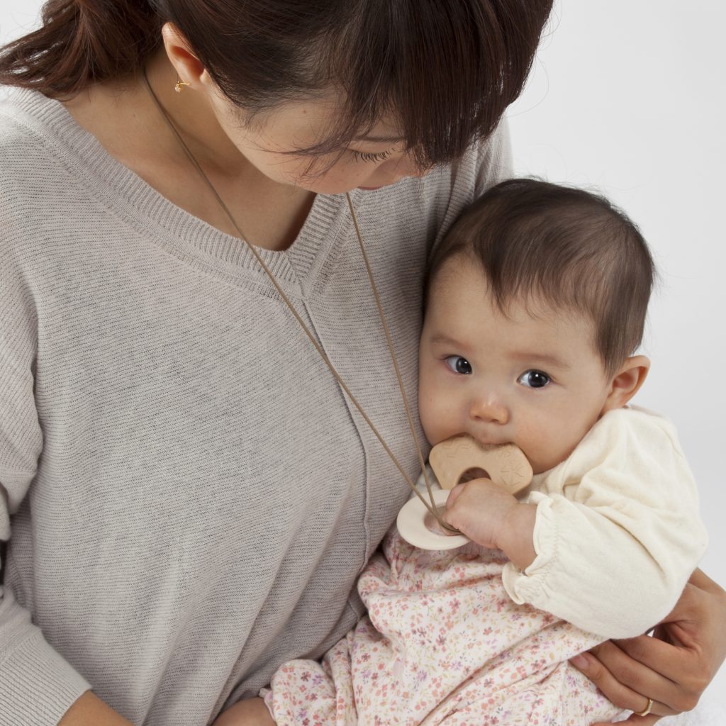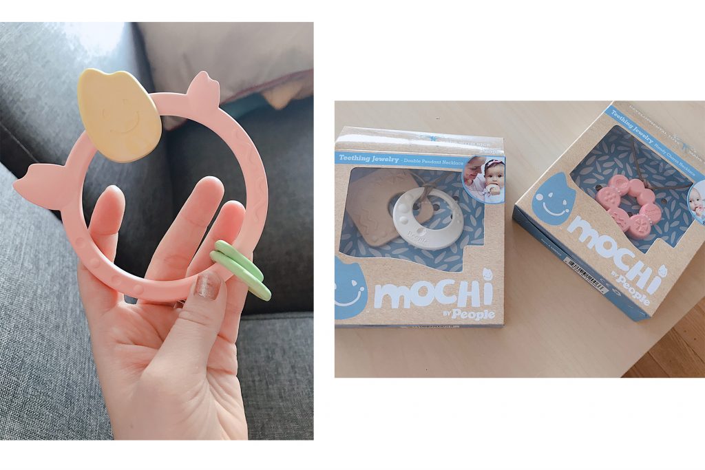 For Babies who lick, chew and explore with their mouth – we created the Mochi Teething Jewelry for both Mom and Dad. This stylish teething necklace comes in two styles – The Double Pendant and the Handy Charm. The Mochi Double Pendant teething necklace is the statement necklace that your friends and baby will love with its neutral tones and interchangeable pieces, so you can style it to fit your style. The Mochi Handy Charm teething necklace has built-in jingling beads and comes in a stylish millennial pink colorway. Both have all the bumps and ridges for teething babies to sooth their sore gums. Wear it every day so you always have a safe and clean toy within arm’s reach for you baby to chew on.