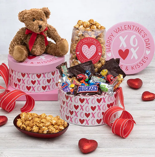 $49.99There’s no doubt your favorite Valentine deserves this sweet, cute, and cuddly Valentine’s Day Chocolate And Teddy Bear Gift Box. Filled with all-time chocolate favorites like Snickers, Milky Way, Twix, and more! GourmetGiftBaskets.com also included their very own small-batch caramel popcorn and an adorable teddy bear in a keepsake xoxo-themed gift box. This bear and your bae belong together!