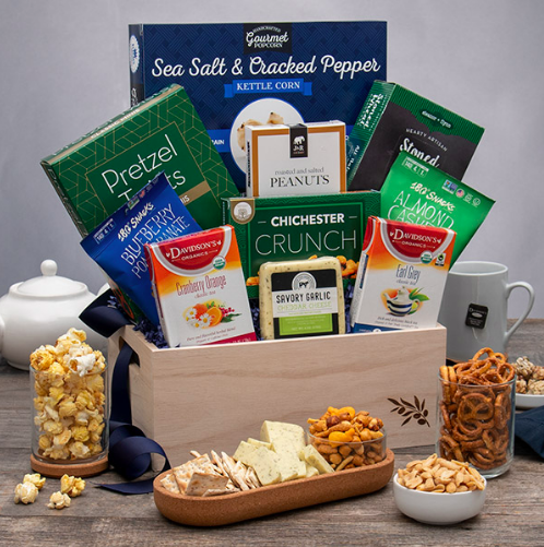 Around the holidays, a lot of people are really conscious about what they’re eating (there are just so many sweets lurking around). That’s why GourmetGiftBaskets decided to create a wonderful Christmas gift full of irresistible foods no one has to feel guilty about enjoying! Inside one of the signature gift crates, GourmetGiftBaskets arranged an assortment of wholesome eats, like premium hand-roasted Virginia peanuts, sweet kettle corn, and dried fruit trail mix, for a holiday gift that’s not only delicious but healthy too!