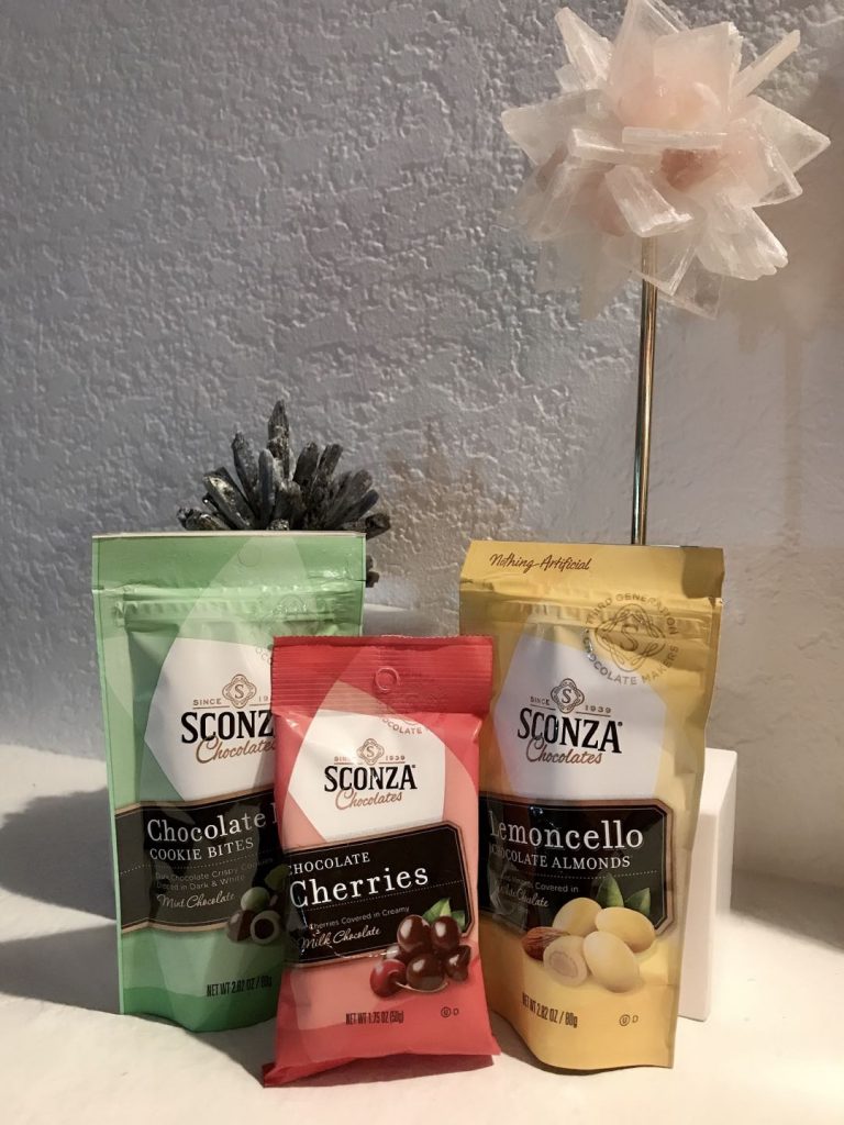 - Lemoncello Chocolate Almonds by Sconza – 1.75 oz. – Almonds cloaked in a white chocolate and lemon cream. The perfect citrus and sweet combination.