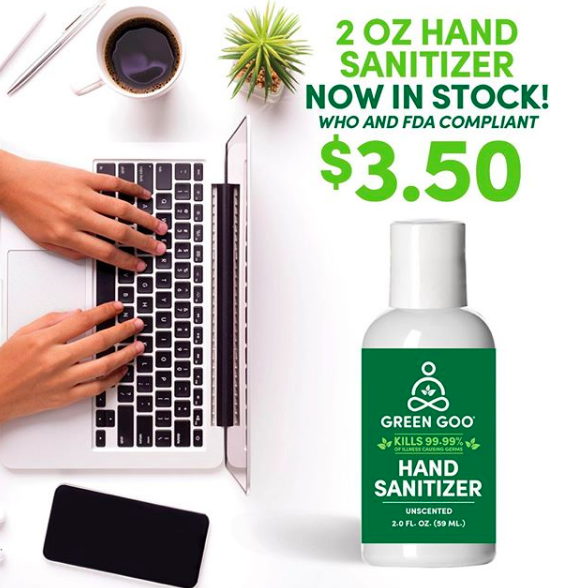Green Goo will continue to produce compliant hand sanitizer options and search for additional opportunities to offer related support for as long as deemed necessary by U.S. health officials.