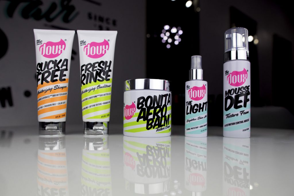 She adds that she created The Doux so it can be used on hair that is worn curly or straight. “Our clients purchase one set of products, and apply them differently to achieve the style they want. If you’re rocking curly hair today, you’re using The Doux’s Mousse Def and Bonita Afro Balm for softness and definition, and The Light for shine. If you’re wearing a blowout, you’re still using the same products, but applying them less liberally, and using the shine mist as a heat protectant. It’s super simple and easy to follow once you’ve seen the results each of them deliver,” Maya explains.
