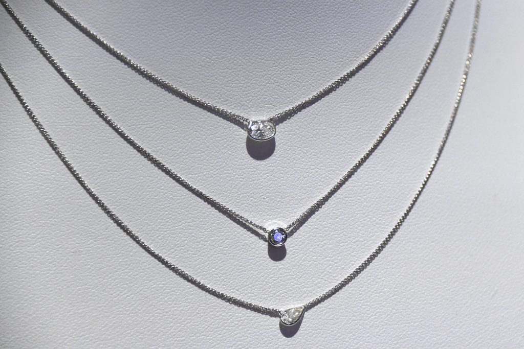The Forevermark Tribute™ Collection is comprised of an assortment of layered pendants, stackable rings and drop earrings featuring multiple Forevermark diamonds in different shapes, set in 18k white, yellow, and rose gold. Each Forevermark diamond in the collection is representative of a woman’s individual qualities, which together, make her the unique, multi-dimensional person that she is. The pieces can be harmoniously stacked or layered to pay tribute to the distinct characteristics, personality and style of the woman wearing them.