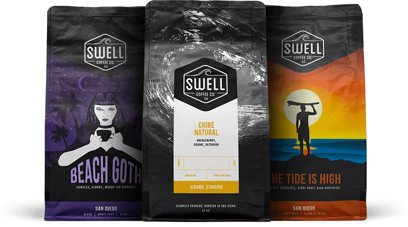 Swell Coffee Co. is a San Diego-based coffee company and roastery with two retail locations in Mission Beach and Del Mar. Its mission is to provide amazing coffee that puts more money into improving the quality of life and work of its farmers around the world.