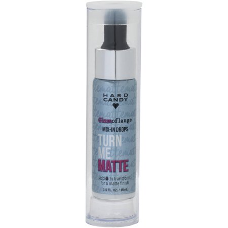 Hard Candy Turn Me Matte Glamoflauge Mix-In Drops are concentrated liquid drops that can be used to change the finish of your liquid and cream makeup to matte. Simply mix several drops of the transformer into your liquid or cream foundation and then apply the mixture to skin as you normally would. Even the dewiest foundations will instantly transform to a matte finish without compromising the look or feel of your foundation. The mattifying drops reduce shininess on the face, especially in the T-Zone, absorb excess oil and sebum, and minimize and blur pores to create a matte complexion. Skin will be more blurred, with pores becoming less visible. Turn Me Matte drops can also be used throughout the day to absorb oil buildup and refresh your makeup.