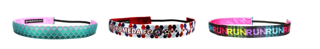 - Non-Slip Athletic Headbands (Starting at $12.00) – The flagship product, the non-slip headbands are second to none! With a soft, velvety underside and an elastic strap, you’ll find them to be exceptionally comfortable. All non-slip bands are available in the standard 20″ and also with an adjustable band, which provides a range of 18-20.5″
