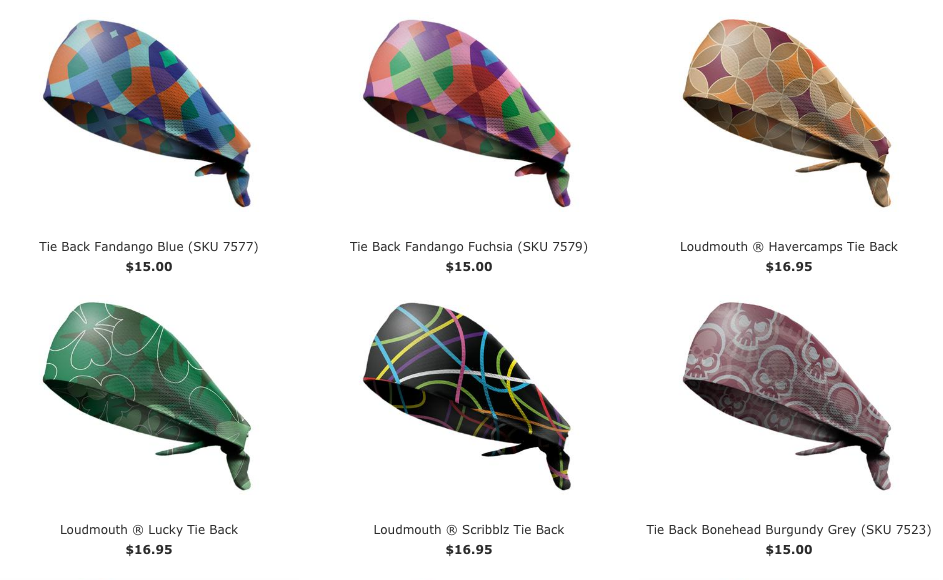 - Head Tie Headbands (Starting at $15.00) – These super soft, ultra-comfortable, tie back style headbands are a great way to keep the sweat out of your eyes. Perfect for men and women.