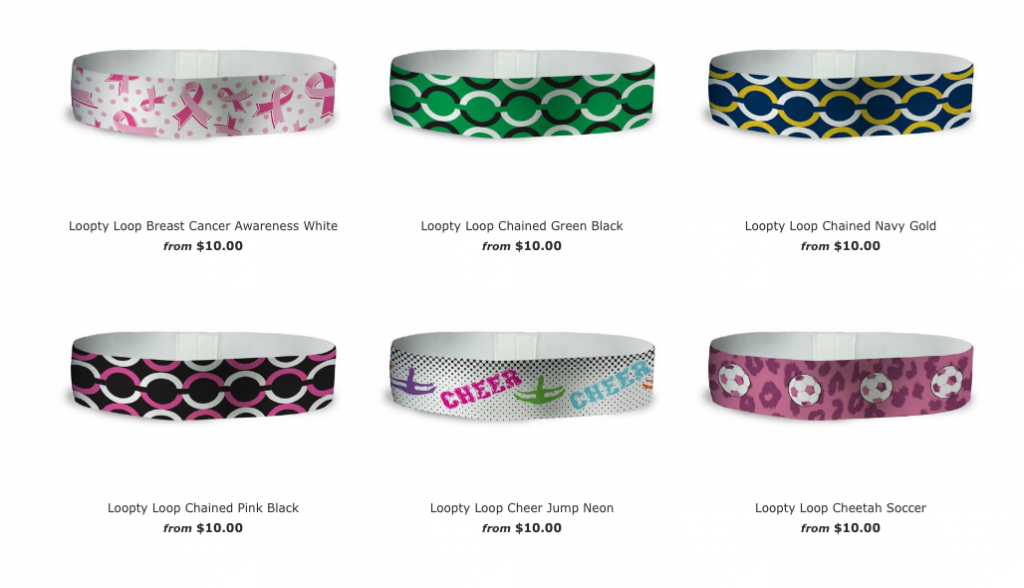 - Loopty Loop Headbands (Starting at $10.00) – One Up Bands continues to stay ahead of the curve with the latest in athletic fashion accessories: Loopty Loop bands. Available in three sizes (1”, 1.5”, & 2”), these comfortable bands are super soft and very stretchy! The best part is, these bands stay put, just like the non-slip headbands.