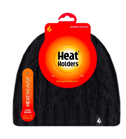 This women’s (ladies) chunky cable hat is knitted in an attractive, soft yarn with a ribbed hem and incorporates the latest HeatWeaver® thermal lining, a luxurious, plush fur-like insulating fabric, that maximizes the amount of warm air held close to the skin.