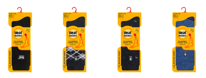 Heat Holders® were developed by a talented product development team in house. The challenge was to make a sock that would be the warmest sock ever and comfortable and practical to wear in daily life. It wasn’t easy, but the team came up with Heat Holders® in 2008. TOG means Thermal Overall Grade. It is a scientific test that measures the thermal (heat retaining) capacity of fabric. Heat Holders® original thermal socks, when tested using this standard, rate TOG 2.34*. This is 7x warmer than cotton socks and almost 3x warmer than ordinary thermal socks! We test socks from most major brands that we can get our hands on and it is safe to say that Heat Holders® thermal socks are almost 40% warmer than the warmest thermal sock we have ever tested, which was a heavy sock with 80% plus wool!
