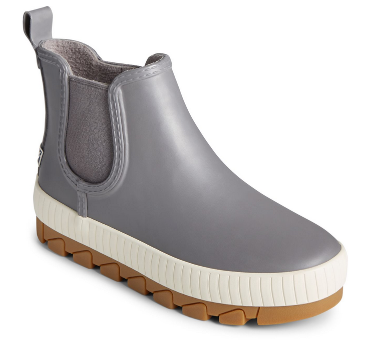 Women’s Torrent Chelsea Rain BootSperry rain boot shows there’s no need to sacrifice fashion for function. It’s made with stylish and durable foxing, a comfortable platform construction and micro-fleece lining to keep feet warm and cozy. Wears well with practically anything, from tights and a skirt to winter wool trousers.- Waterproof rubber upper