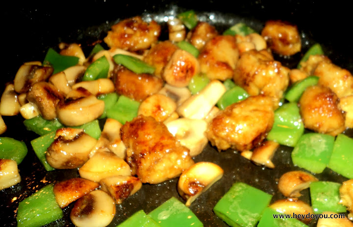 Lately I’ve been beyond lazy when it comes to cooking, and have been living off of oatmeal, cereal, and bagels. I needed to make things a little more exciting, so I bought some soy bites and made a DELICIOUS stir fry with green peppers, mushrooms, garlic and ginger.