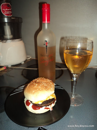 After the Skinny Girl event we went home with a lovely bottle of Skinny Girl Sangria, and last night I was in the mood to put it to work. The Sangria and the veggie burger are total match made in heaven. T’was delicious!