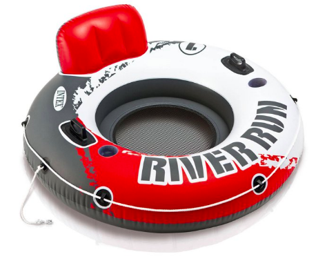 The inflatable unit also comes with a patch for quick and easy repairs.Intex Inflatable Red River Run I Pool Tube, 53″:Built with a comfortable backrest2 built-in cup holdersIntex float tube has durable handlesMesh bottom to keep coolAll-around grab line2 air chambers for added safetyIncludes a repair patch.