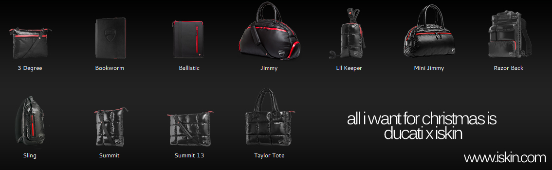 Last month, I went to the New York Ducati store reopening and was blown away by all the hot bikes and enthusiasts. Funny I noticed how everyone was taking pics with the iPhone 4S. What a brilliant collabo! The best Mac accessory company iSkin and Ducati did a special collection just in time for Christmas.