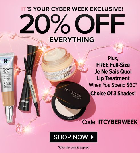 Take the stress out of your holiday shopping, avoid the lines and endless searching for the right gifts! Let IT Cosmetics help you quickly cross off all the beautiful women on your gifting list with amazing online BLACK FRIDAY and CYBER MONDAY beauty deals! itcosmetics.com is your one-stop shop this holiday season!
