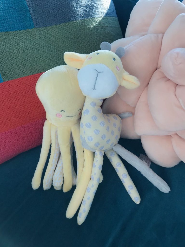 How cute they are! They are super soft, with sweet and cute colors. Every time I see them, they just bring the natural smiles on my face. But if your lady is not like me to love plush toys. These super cute toys are great gift for your babies or baby showers. They are inseparable friends to discover the world with, cuddle, and share many adventures with. These lovable plush toys will provide security and comfort for your children. A safe, soft, long-limbed toy that your children will love to play with each and every day!