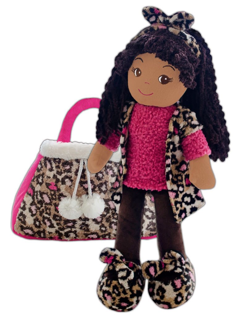 - Emme Pink Leopard Toddler Doll: Stay elegant with the Emme doll! With soft, brown skin and long brown hair,
