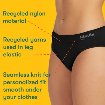 - Kindly bras are made from more than 50% recycled materials and their undies are made from more than 40% recycled materials.