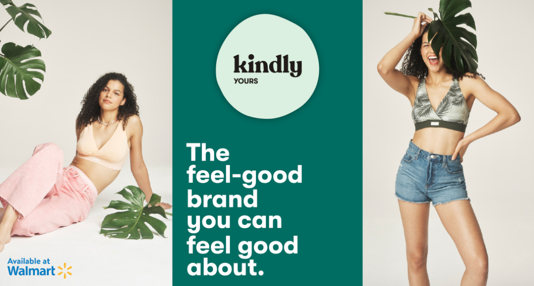Kindly is on a mission to make the world a kinder place by designing products that are kind to your body, kind to your wallet, and kind to the planet. The brand has partnered with Walmart to bring you the first-ever plant-based bra cup made from sugarcane, and a collection of intimates sourced from recycled materials. The brand can be found exclusively on Walmart.com and in over 3,000 Walmart locations nationwide.